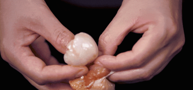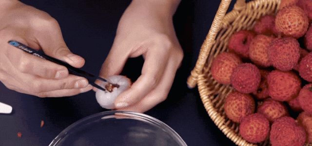2. Add 10 g of cooking wine, 25 g of light soy sauce, 5 g of salt, 2 g of black pepper, 5 g of honey, grab well and marinate for 20 minutes. 3. Peel and core the lychee and set it aside. 4. Fill lychee meat into chicken wings. 5. Put it in the oven at 180 °C and bake for 10 minutes. 6. Mix a honey sauce, 20 g of light soy sauce, 10 g of dark soy sauce, 5 g of honey and 35 g of water.