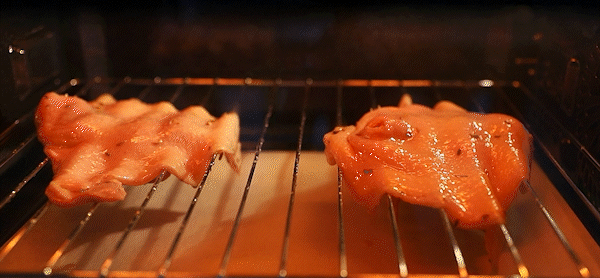 4. Put the marinated duck leg on the grill. Place directly into the no-preheat oven and bake at 180 degrees for about 20 minutes. Until the surface of duck leg is golden and crispy