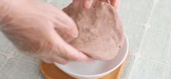 8. Brush the surface of the small bowl with food oil, add a piece of taro paste, a piece of duck meat, and cover it with a piece of taro paste.