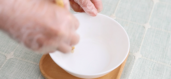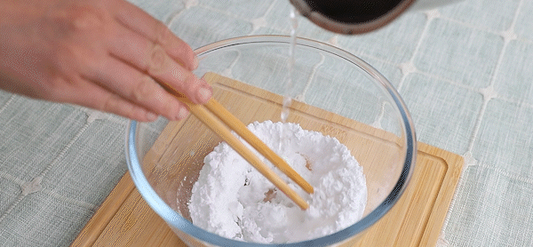 5. Make taro paste. Add 40 grams of clear noodles and 60 grams of boiling water to a bowl, and quickly stir evenly