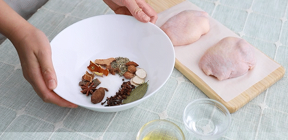 2. Add peanut oil, high white wine and salt to the bowl filled with spices and stir well