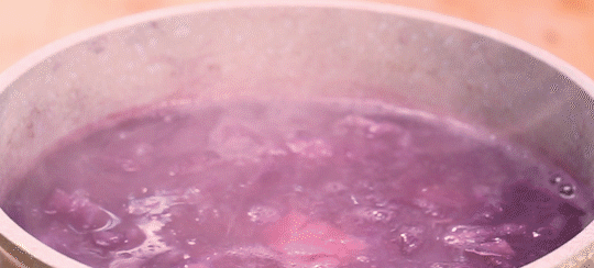 3. Boil purple potato, taro and white fungus in water for 30 minutes (boil on high heat and turn to medium heat).