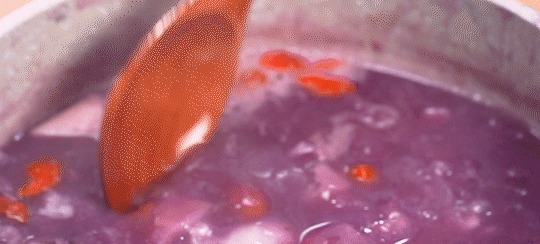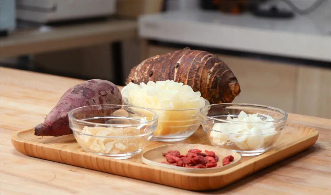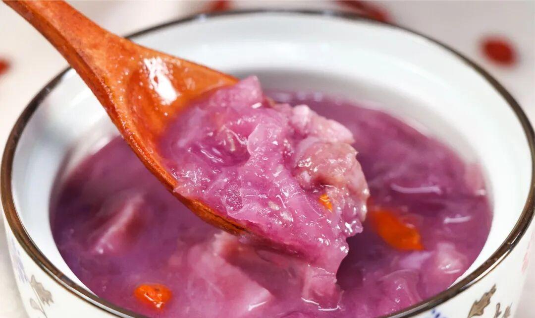 A bowl of purple sweet potato and white fungus soup starts a healthy year 。