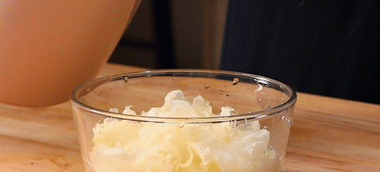 2. Remove the roots of Tremella fungus, divide them into small pieces, and soak them in boiling water for 10 minutes.