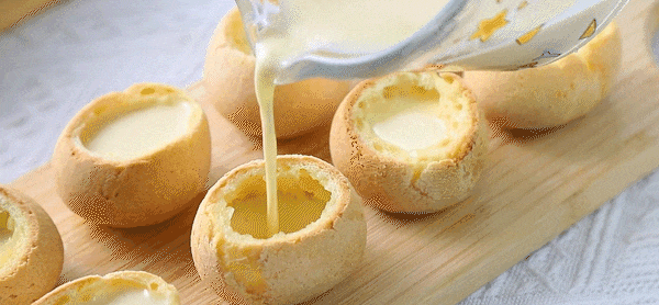 5. Take out the baked mochi and let it cool for later use, then remove the top of the mochi