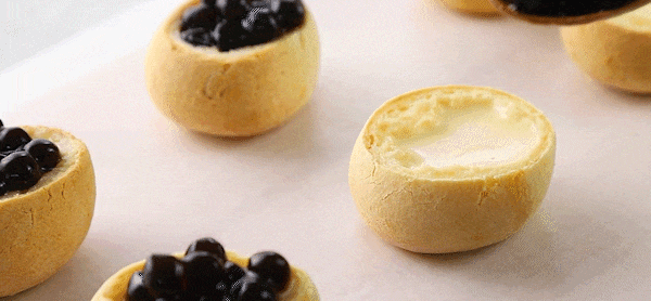 5. Take out the baked mochi and let it cool for later use, then remove the top of the mochi