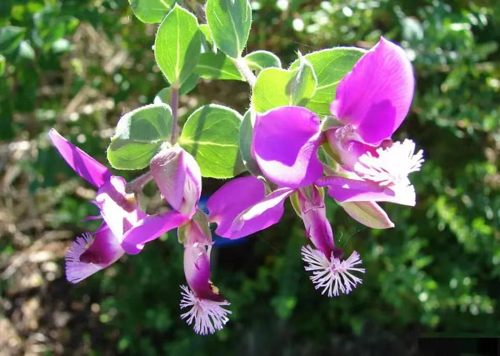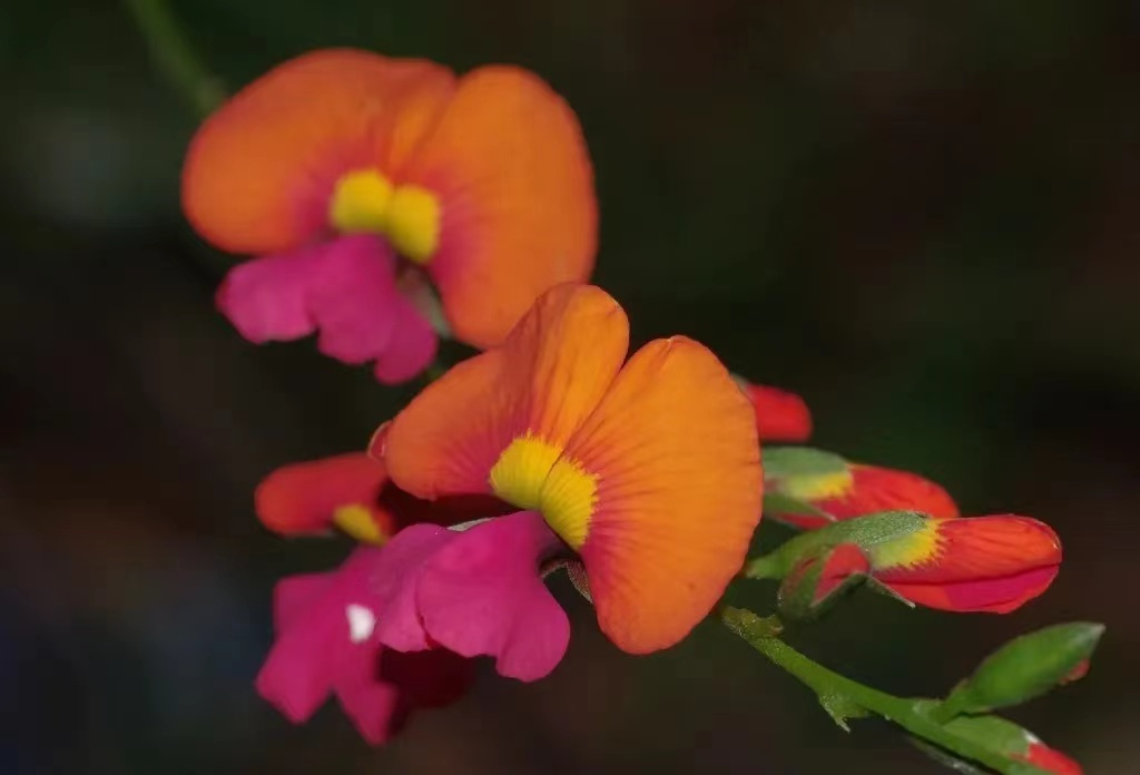 Heart-leaf flame pea comes from Australia. The shape of pea flowers and the flame-like orange-yellow flower color are just as the name suggests, eye-catching.
