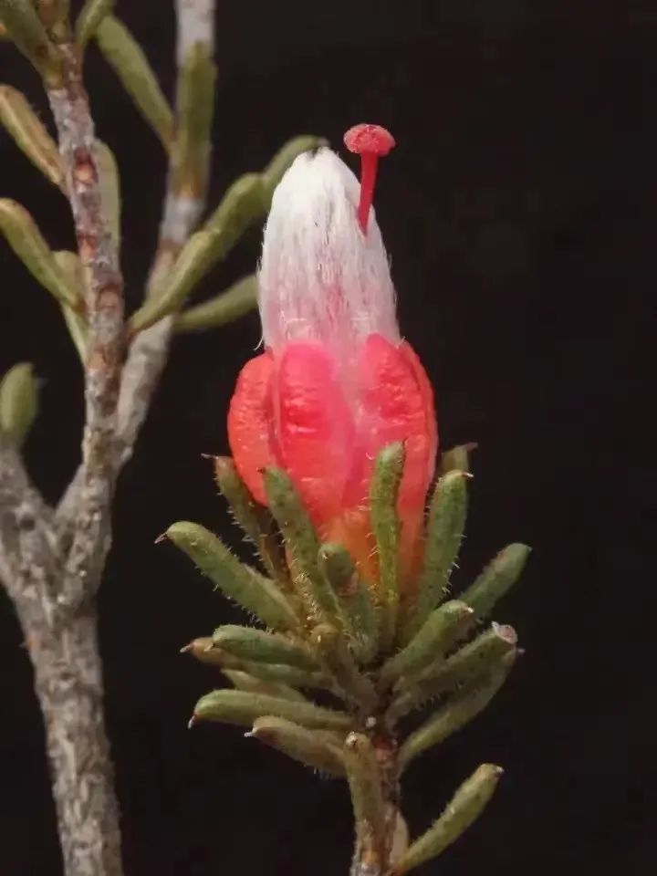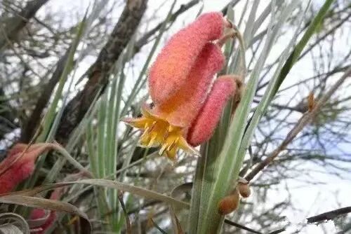 The Frost Red Bell is also a tube flower and is endemic to Western Australia. Its flowers are red or pink on the surface, densely covered with silvery white fine hairs, as if covered with a thin layer of frost, while the inside is yellow and smooth.