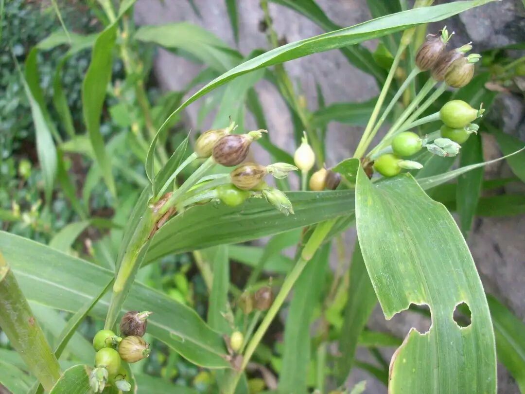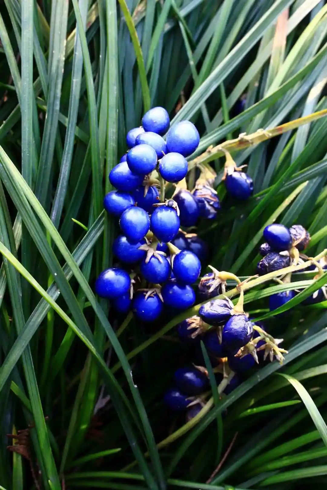 The fruit of Ophiopogon japonicus is very beautiful and unique bright blue. Except for a layer of fleshy skin on the outside, the inside is white and slightly transparent hard things. Childhood Ophiopogon japonicus is often played as a “bullet”, and now it is often planted as a ground cover plant.