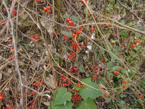 Scientific name Snakeberry, appearance Small round, with small red particles on it. When I was a child, I used to get rid of its small particles one by one, leaving pink (nearly flesh-colored) inside. Flesh of , floppy.