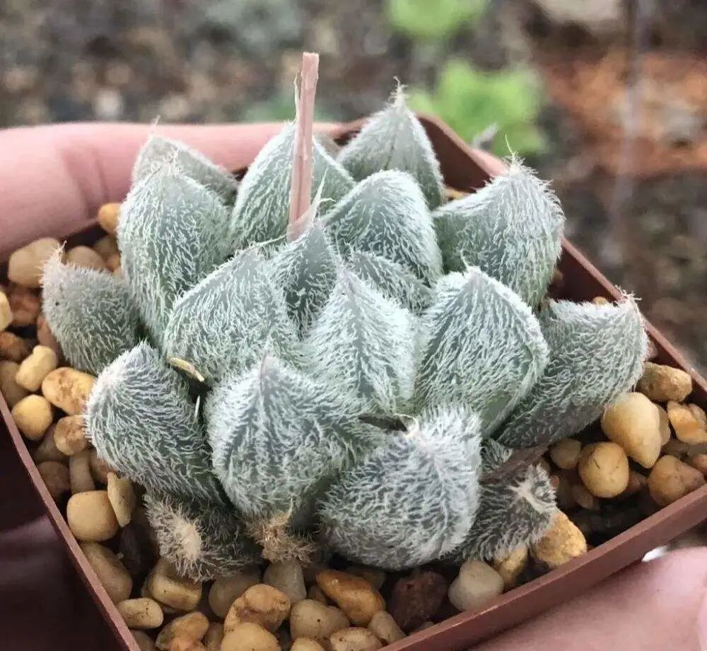 Ji Yulu is A relatively small variety in the Yulu family , the leaves are emerald green, with blue-green linear veins on the surface, highly fleshy, thick and soft, and the apex is enlarged and round-headed, There are small filamentous whiskers at the tip of the leaf, and the transparency of the window is high.