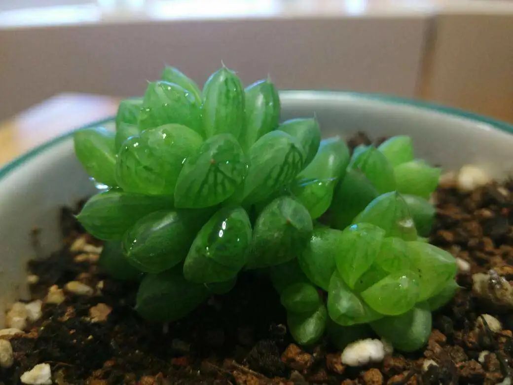 Jade dew is a perennial fleshy herb native to South Africa. Its plant type is compact, the fleshy leaves are arranged in a rosette shape, and the top is transparent or translucent (called “window”). The whole plant looks crystal clear, fresh and moist, and has high ornamental value.