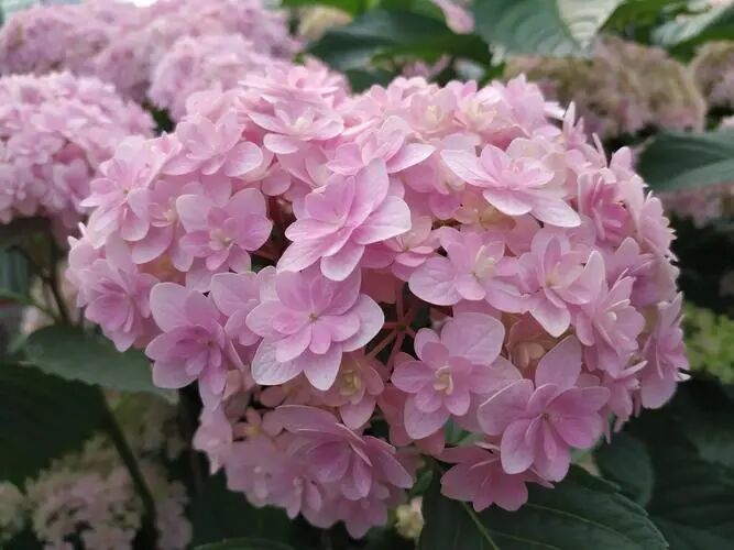 A variety of hydrangea music series, whose color is light blue or light pink depending on the ph value, Good branching, relatively abundant flowers , flowering from May to September. Of salsa The leaves will also turn yellow-green before falling.