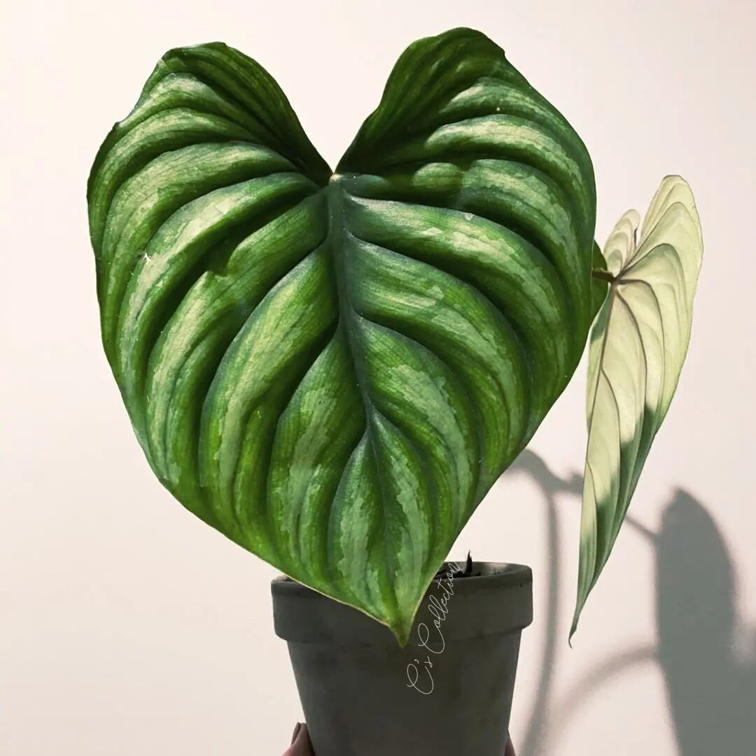 The pole of White Wizard’s green velvet is green, with thicker leaves and rounder leaves, a bit like young monstera deliciosa.