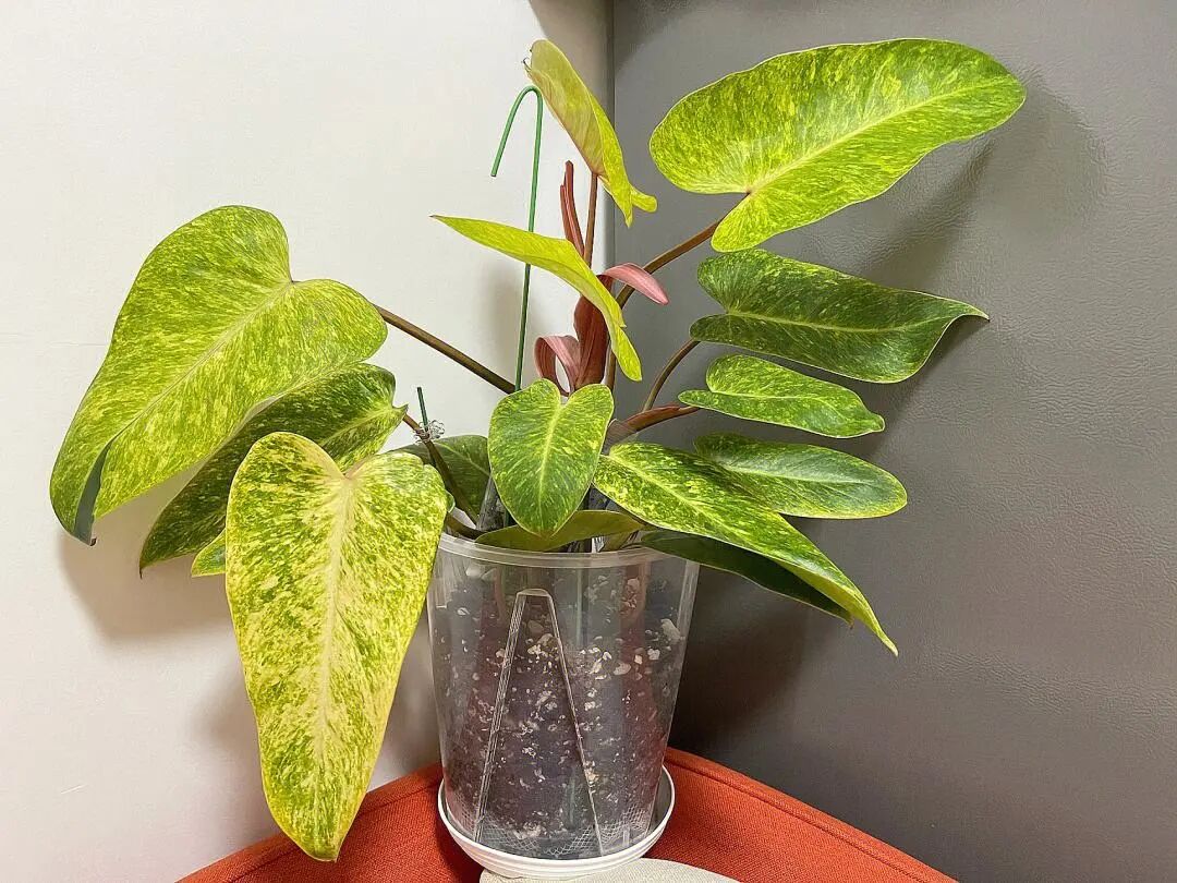 The leaves of caramel marble green velvet are very large, The new leaves are caramel-colored and appear in patches as they grow Brocade spots, and the color is complex and changeable.