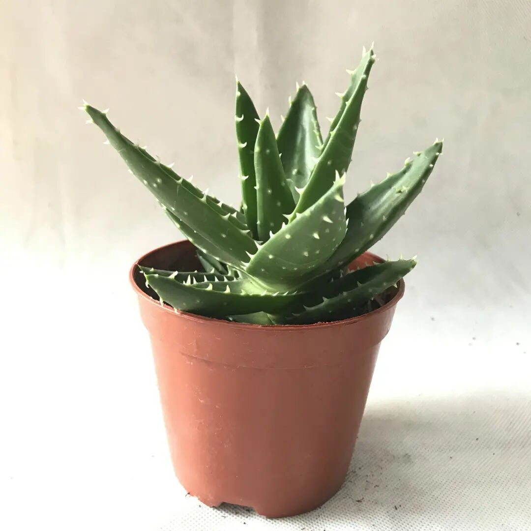 Pearl Aloe is The role of face value in the aloe family , the leaves are green and flat, numerous and dense, each leaf is densely covered with raised pearl-like white spots, there are dense small thorns on the leaf edge, and there are long whiskers on the leaf tip. It looks cute with a little fairy spirit, and its ornamental value is extremely high.