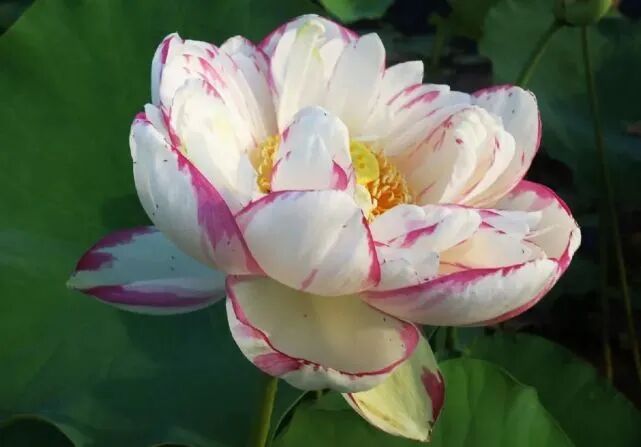 Single-petal type, the flower is particularly large (the diameter of common lotus is 20 cm, and it can reach a maximum diameter of 35 cm), with slender petals, red at the tip, light green at the middle and yellow at the base.