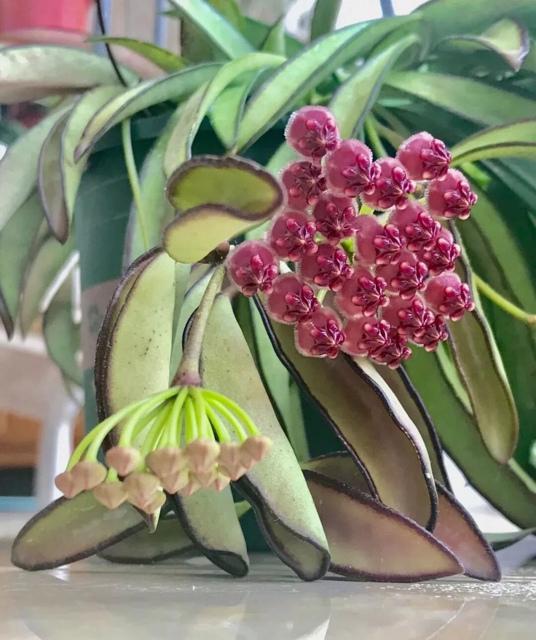 Bengelton’s hoya has fewer leaves, and its leaf color will turn red in full sunny environment, and its leaves are Elliptical to oval, The veins are obvious; Corolla pink orange to red (flip backwards) , the secondary corolla is purple-red, and it is said to have a faint indescribable floral fragrance.