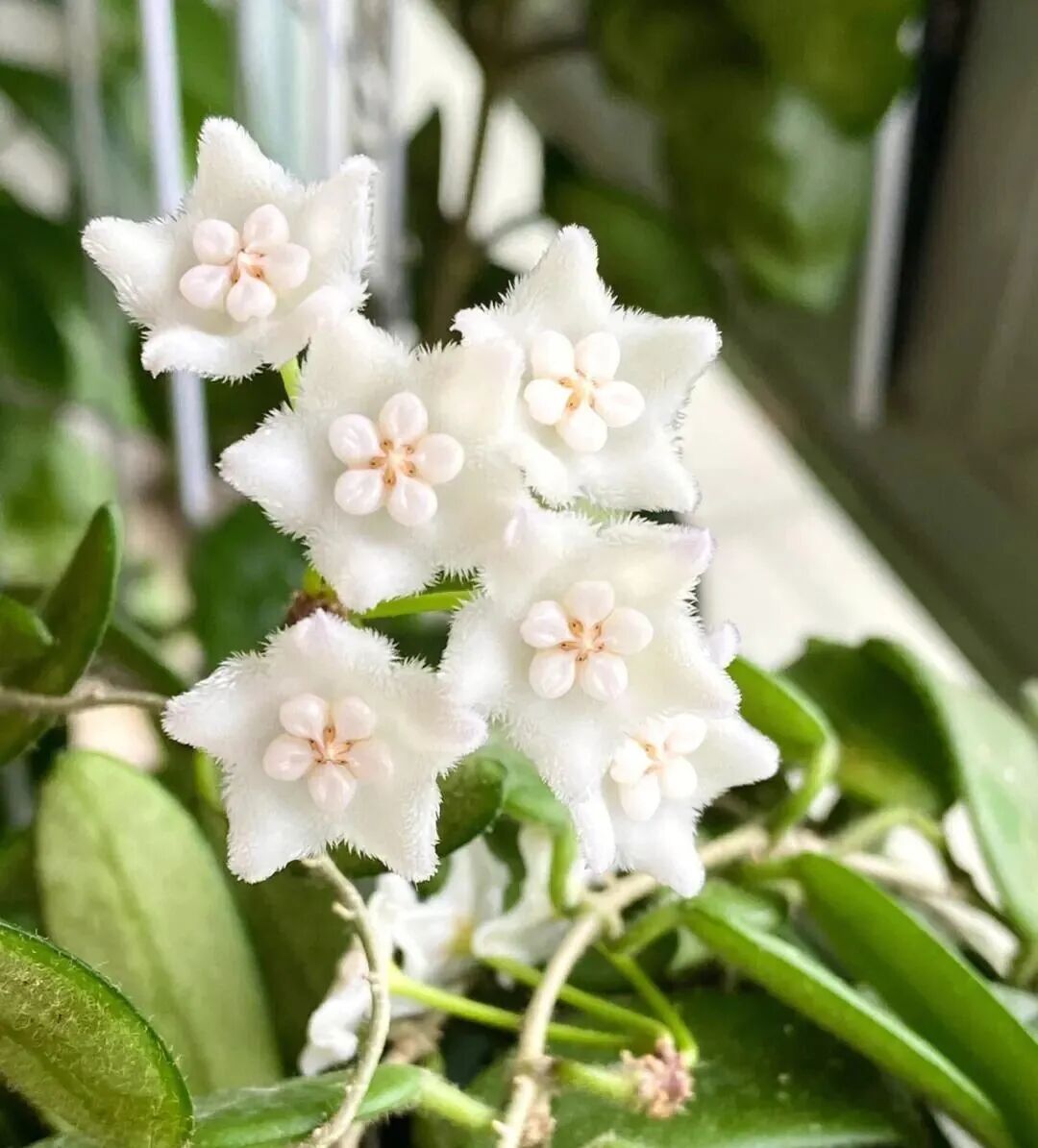 The leaves of Hoya crownata are Elliptic, stems and margins of branches and leaves appear densely fluffy; The corolla is pink (Hoya crownata powder) And white (Crown blue white) Two kinds, shaped like starfish, very smooth, Accessory corolla yellow.