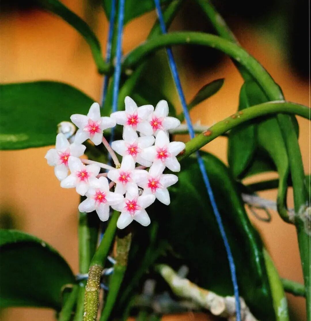 Hoya linefolia is a very special variety of hoya, Very many branches, poor upright (All fall naturally) , plus the leaves are slender, like wicker; Corolla white (almost transparent) , Vice Corolla Light yellow.