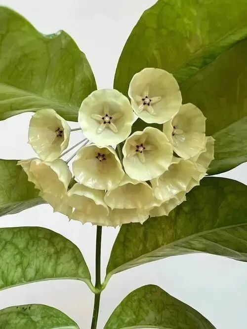 Hoya compenna The leaves are large, oblong to lanceolate, The veins on the surface of the leaves are clearly visible and covered with silver spots; The corolla is white, broad bell-shaped, and the secondary corolla is white. It loves to bloom and bud, and has obvious lemon flower fragrance.