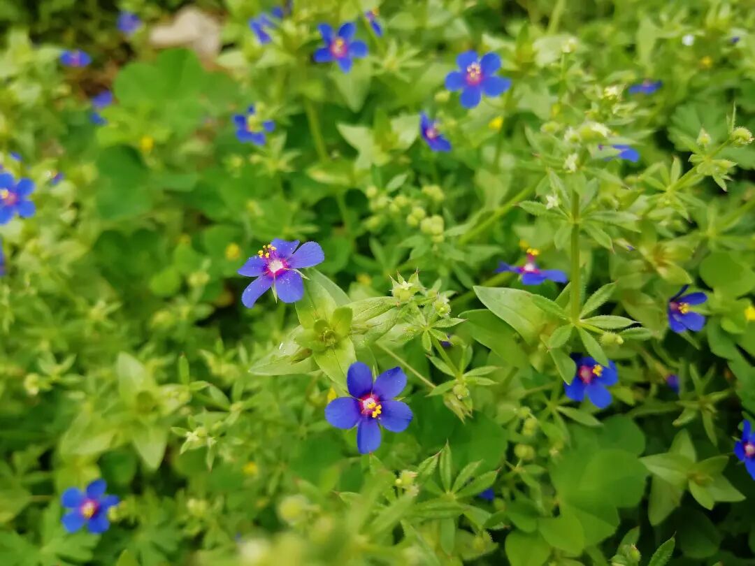 Annual creeping weak herb, blue flowers grow solitary in the axils of leaves, and there are also orange flowers!