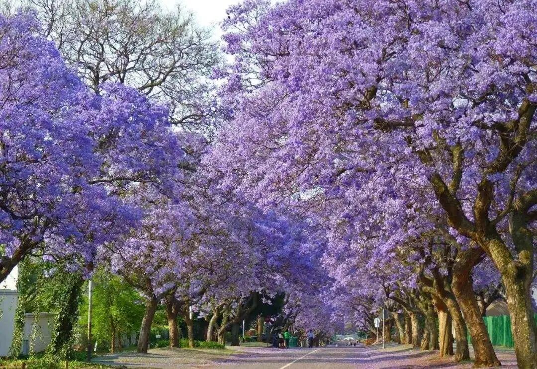 Jacaranda is a flower-observing tree (which can grow to High), Flowers are blue-purple flowers that cover the sky and the sun , very spectacular, is a famous street tree in the south.