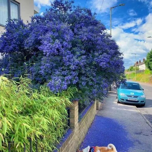 Evergreen tree whose flowers are fragrant, small and neat, often arranged into cymes, spike-like panicles, cyme racemes, cyme panicles, In early spring, blue flowers bloom all over the trees.
