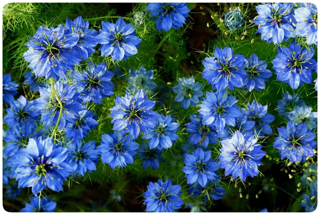 The flowers are small, but blue and lovely, and the stars are dotted on the white fluffy plants.
