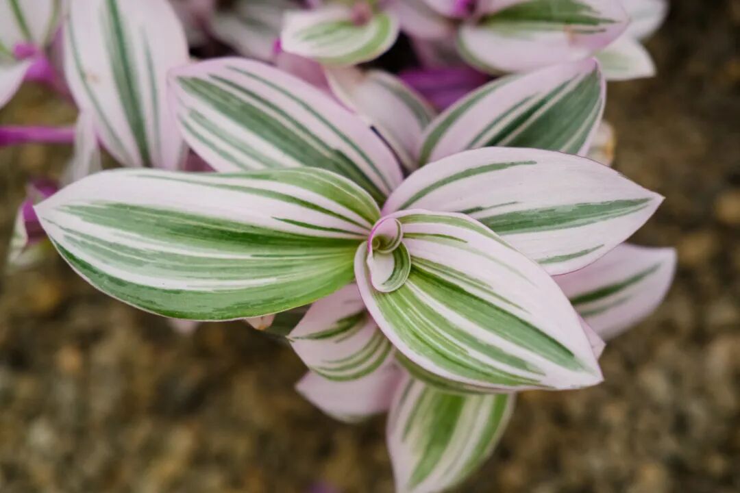 Oil painting Chlorophytum belongs to Jinhua variety, and its plants are colorful. The leaves of oil painting Chlorophytum are purple on the back, purple, pink and green on the front, and a little light yellow. The leaves are large, the stems are thick and prostrate, and the overall color is bright.