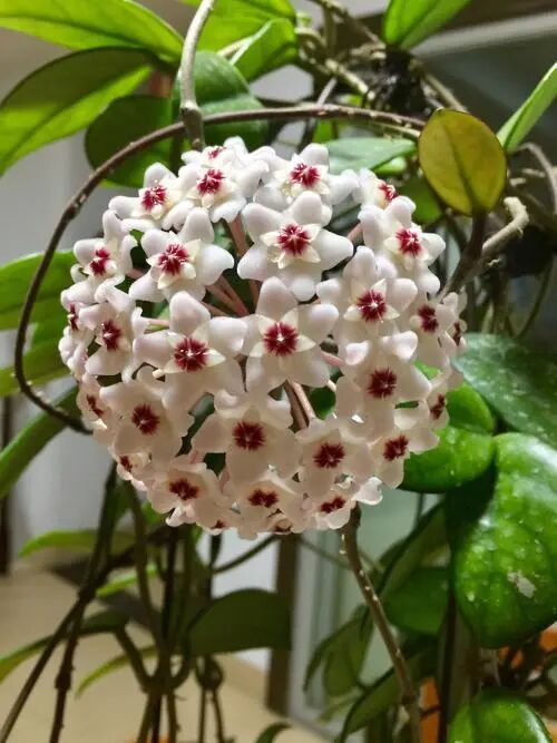 Perennial evergreen vines, axillary “flower balls”, generally consist of about 30 flesh flowers, with a rich floral fragrance (usually there will be floral fragrance at night).