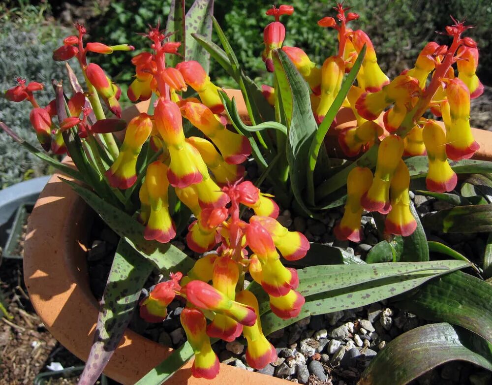 Perennial herbaceous plant with bulbs underground, long tubular bell-shaped flowers, thick yellow, orange yellow, blue purple and other colors, or red, yellow and light green are more gorgeous. Its leaves have reddish-brown spots, which are also of ornamental value. It likes light and water, but it is not tolerant of waterlogging.