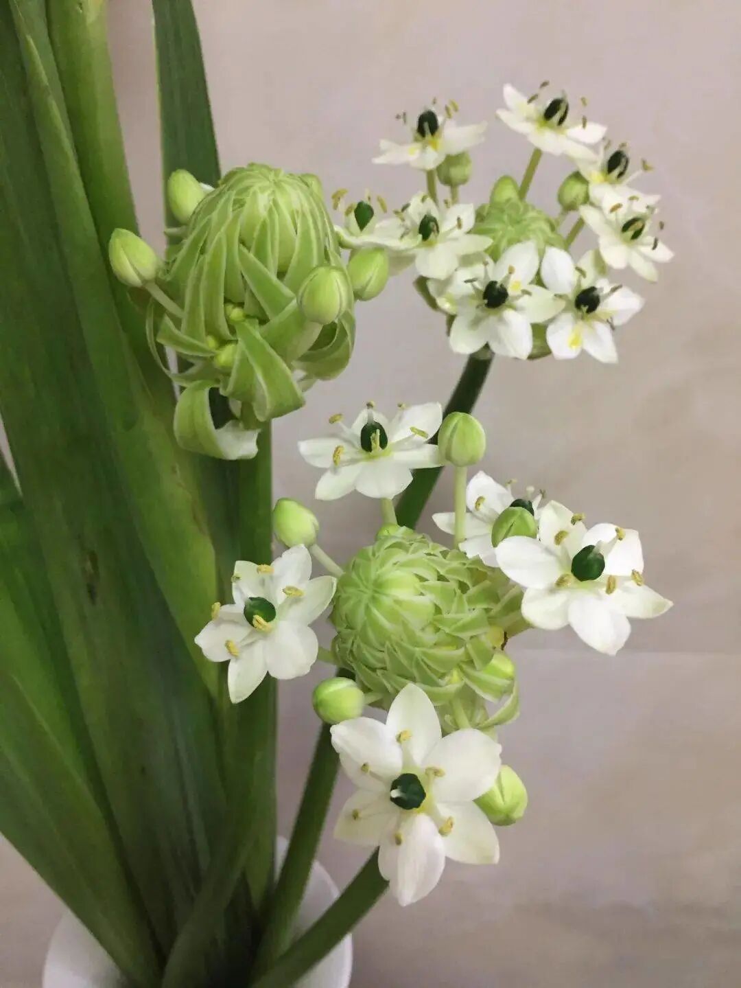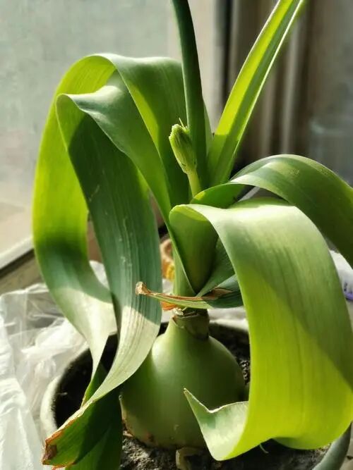 Perennial herbaceous plants , bulbous bulbs are gourd-like, so commonly known as For Hululan. It has a special feature: when a leaf grows, several sub-balls will grow on the foreskin of the bulb, which looks like tiger eyes, so it is also called tiger eyes evergreen. Its scape is thick and curved, and there are dense green and white flowers on it. It is a flower with ornamental and medicinal value.
