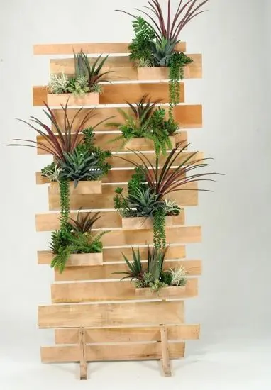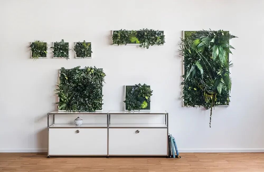 Plant different plants in a wooden frame and then hang them on the wall to add a touch of greenery to the interior.