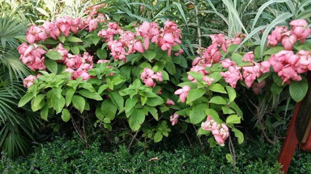Evergreen shrub (up to 3 m tall), terminal cymes, with enlarged pink leaf-like sepals in each inflorescence, very showy, flowering from May to November. Pink leaf golden flowers like high temperature, sufficient light, heat and drought resistance, and avoid long-term water accumulation or poor drainage.
