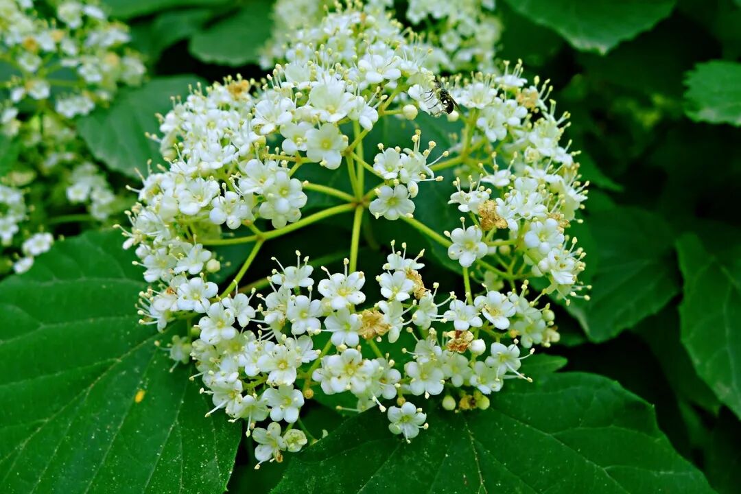Deciduous shrubs (up to 4 m) with ornamental flowers and fruits: Terminal conical cymes, flowers small and Dense, white flowers, flowering from April to May; The fruit is oval or nearly round, red when mature (rarely blue-purple-black), slightly wrinkled, and the fruit maturity is September-October. Elderberry has strong adaptability, likes light (and shade), is cold-tolerant and drought-tolerant, and is not waterlogging-tolerant.