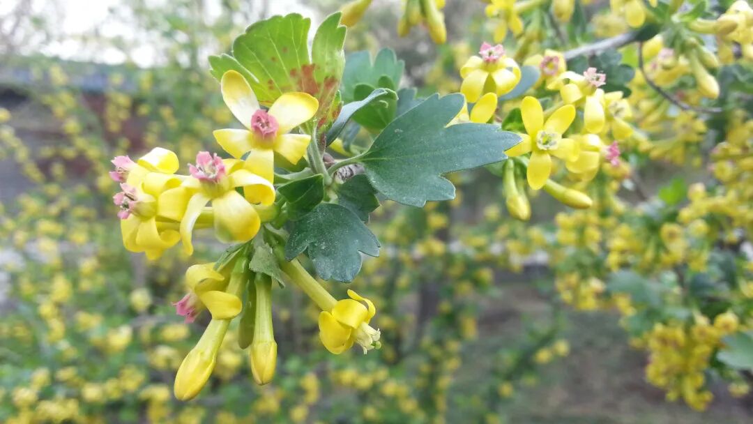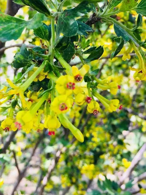Deciduous shrub (1-2 m tall) with yellow flowers, often drooping, racemes, fragrant, flowering in May. Fragrant tea ribes likes warm and humid climate and is more tolerant to shade.