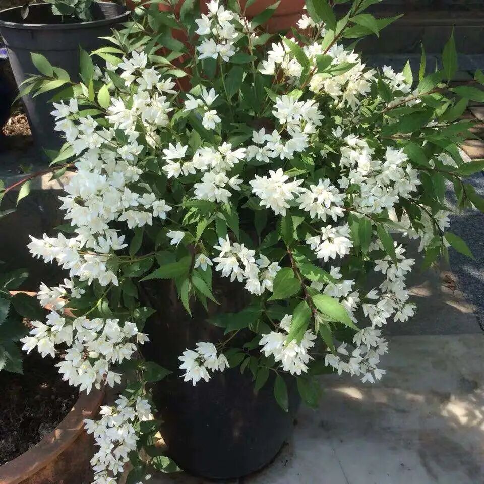 Deciduous shrub (up to 3 meters), upright panicles, white flowers or pink spots (single petals and double petals), large flowers (white flowers on trees after flowering), flowering from May to June. Deutzia is light-loving (slightly shade-tolerant), warm and humid climate, cold-tolerant, drought-tolerant and pruning-tolerant.