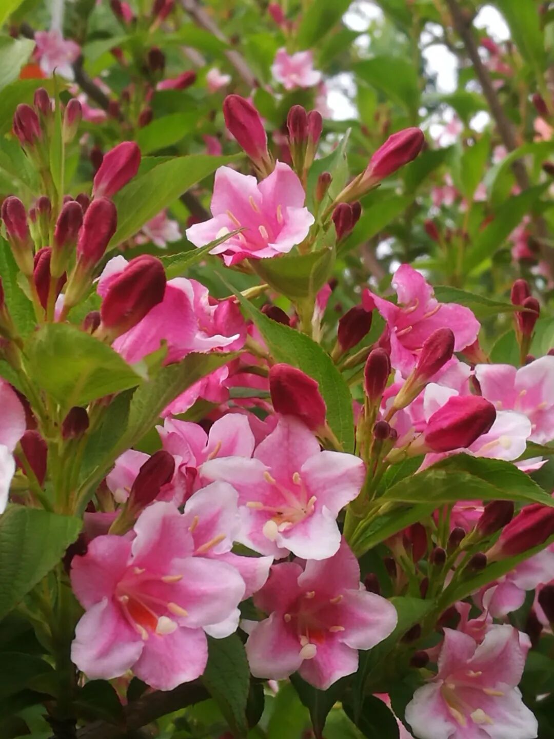 Deciduous shrub (plant height 1-2 m), with purple-red or rose-red flowers, solitary or cymes born in the leaf axils or branch tops of short lateral branches, flowering from April to June. Weigel flowers are light-loving, shade-tolerant, cold-tolerant, and intolerant to waterlogging.
