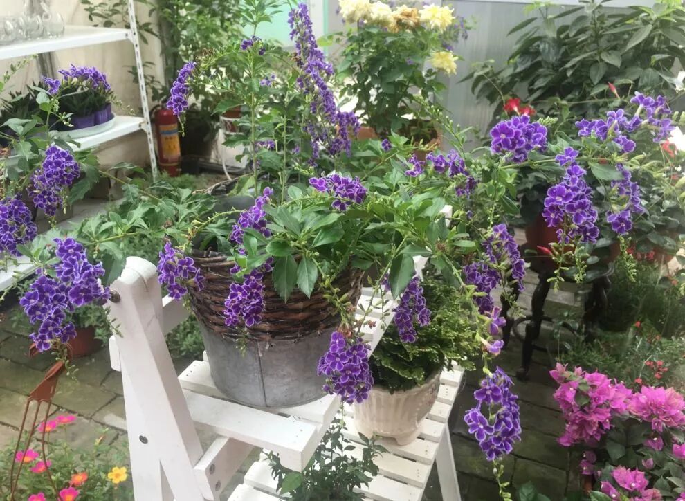Evergreen shrubs with ornamental flowers and fruits: Terminal racemes, flowers bloom in clusters and droop, the common flower color is purple (with white edges), blooming from spring to autumn; When the fruit is ripe, it is orange-yellow and gathers into clusters, but it is poisonous (don’t eat it by mistake).