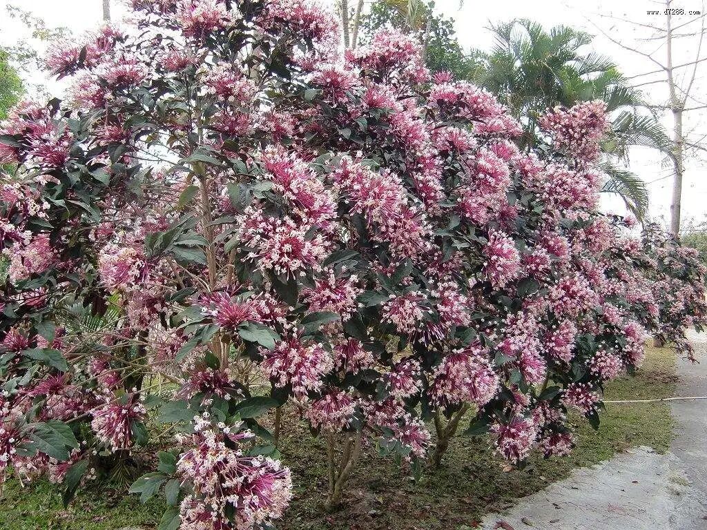 Evergreen shrubs (up to 4 m high) with ornamental flowers and leaves: Terminal cymose panicle, corolla long tubular, purple-red, apex 4-5-lobed, like a blooming fireworks; The leaves are papery, dark green on the front and dark purple red on the back. Pyrotechnic tree It likes light, high temperature and humid environment, is heat-resistant, drought-resistant, barren-resistant, shade-resistant and cold-resistant.