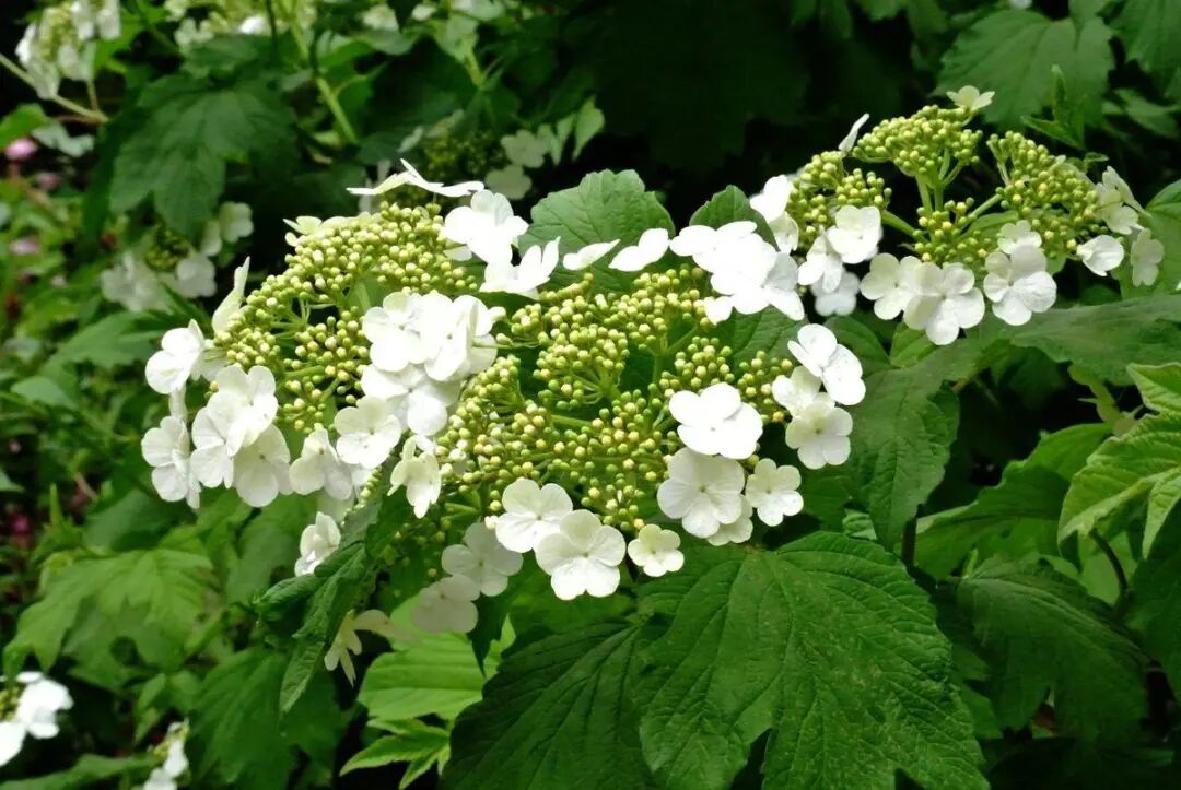 Deciduous shrubs (up to 3 m high) with ornamental flowers and leaves: Flowers milky white, cymes in the form of compound umbras, flowering in May-June; The ripe fruit is red, elliptical and oval, edible, and can also be made for wine. The fruit ripening period is September-November. Viburnum likes light, warm and humid environment, and is resistant to shade and cold.