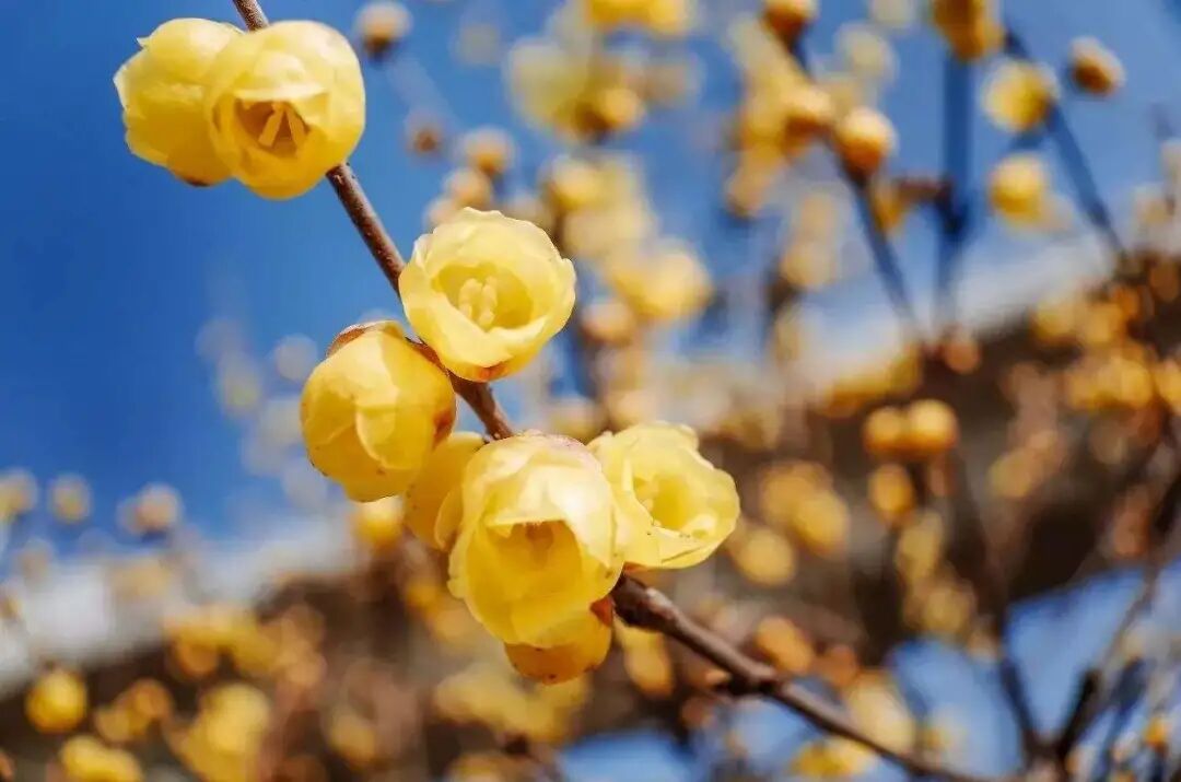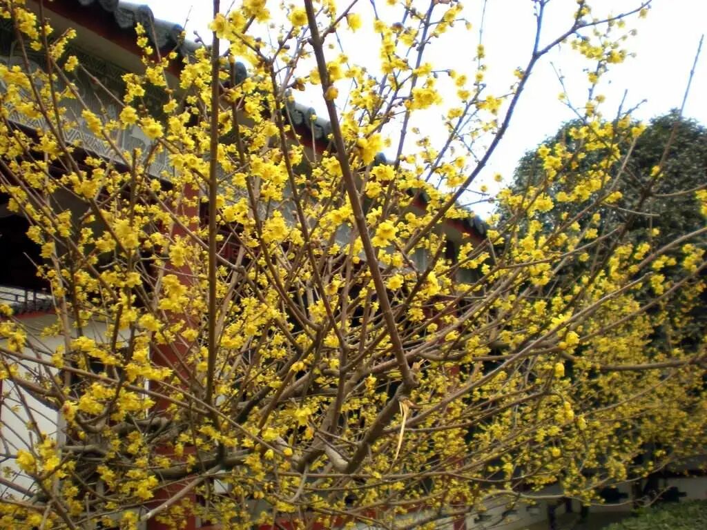 Deciduous shrub (often clustered), with bright yellow flowers, open first leaves, born in the axils of the second-year branches, extremely fragrant, flowering from November to March of the following year. Wintersweet likes sunshine (can tolerate shade), is cold-tolerant and extremely drought-tolerant (there is a saying that “wintersweet can’t die from drought”), and is afraid of waterlogging.