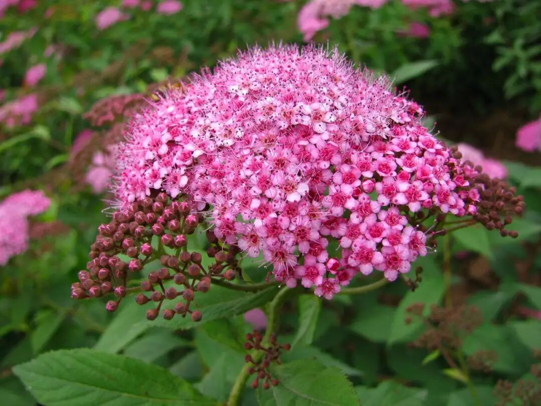 Upright shrub (1-2 m tall), growing round or pyramidal panicles (6-13 cm long) with pink color Red, flowering from June to August. Spiraea is light-loving and slightly shade-tolerant, preferring warm and humid climate and deep and fertile soil.