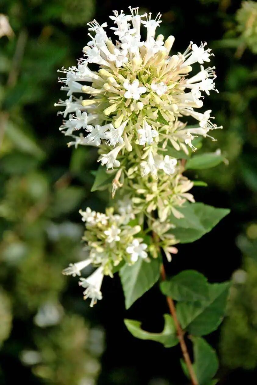 Deciduous multi-branched shrub (up to 2 m) with cymes at the axils of the leaves, composed of many inflorescences assembling into a conical cluster of flowers, flowers White to red, funnel-shaped (filaments elongated), aromatic. Glutinous rice strips like light (shade resistance is also strong), warm and humid climate, and are resistant to pruning but not to accumulated water.