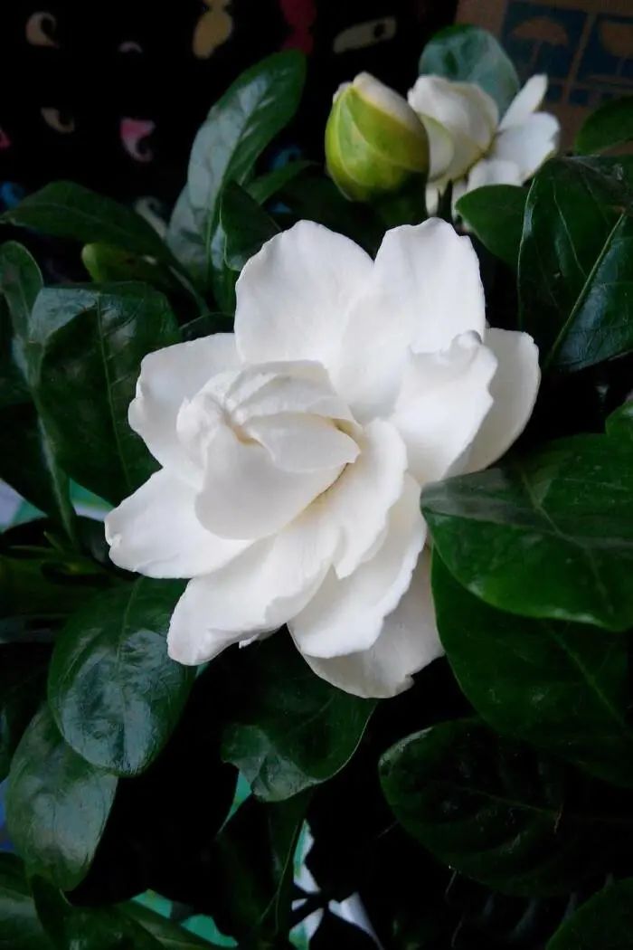 Evergreen shrub (ca. 1.2 m tall) with white, large, fragrant flowers, solitary branches at the apex or leaf axils (with single and double petals (divided into), extremely fragrant, flowering from May to August. Gardenia likes warm, humid and sunny environment (also tolerant of semi-shade), is cold-resistant and afraid of stagnant water.