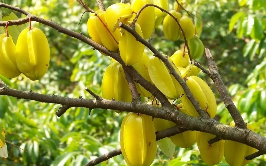 Carambola trees can grow very tall, up to more than 10 meters, and the fruit can produce fluid and quench thirst.