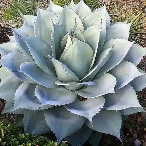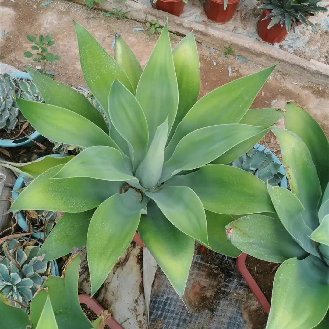The plant height of Agave whale can reach 90 cm, the leaves are thick and white powdered, pink-blue, and the leaves are concave inward. Sometimes several ribs are formed on the leaves, like a big barbed tongue.