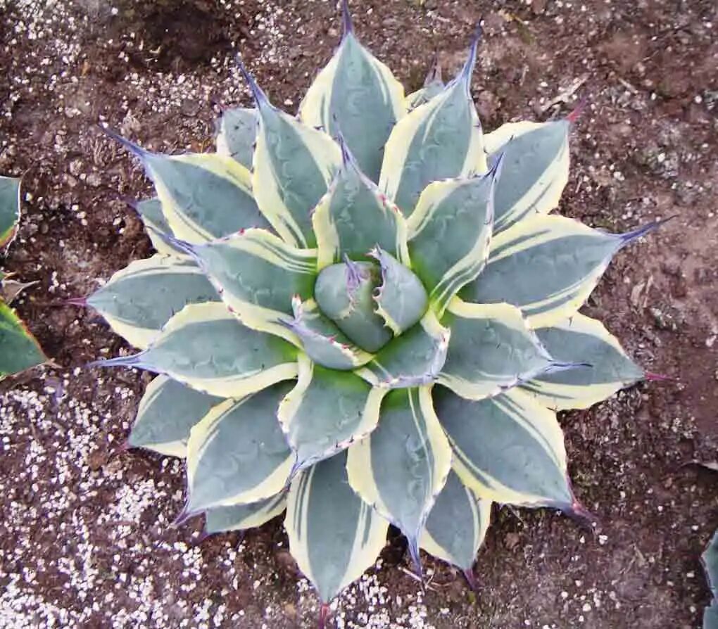 The Navarro agave is similar to the Queen Victoria agave, except that the white stripes on the leaves of the former are raised.