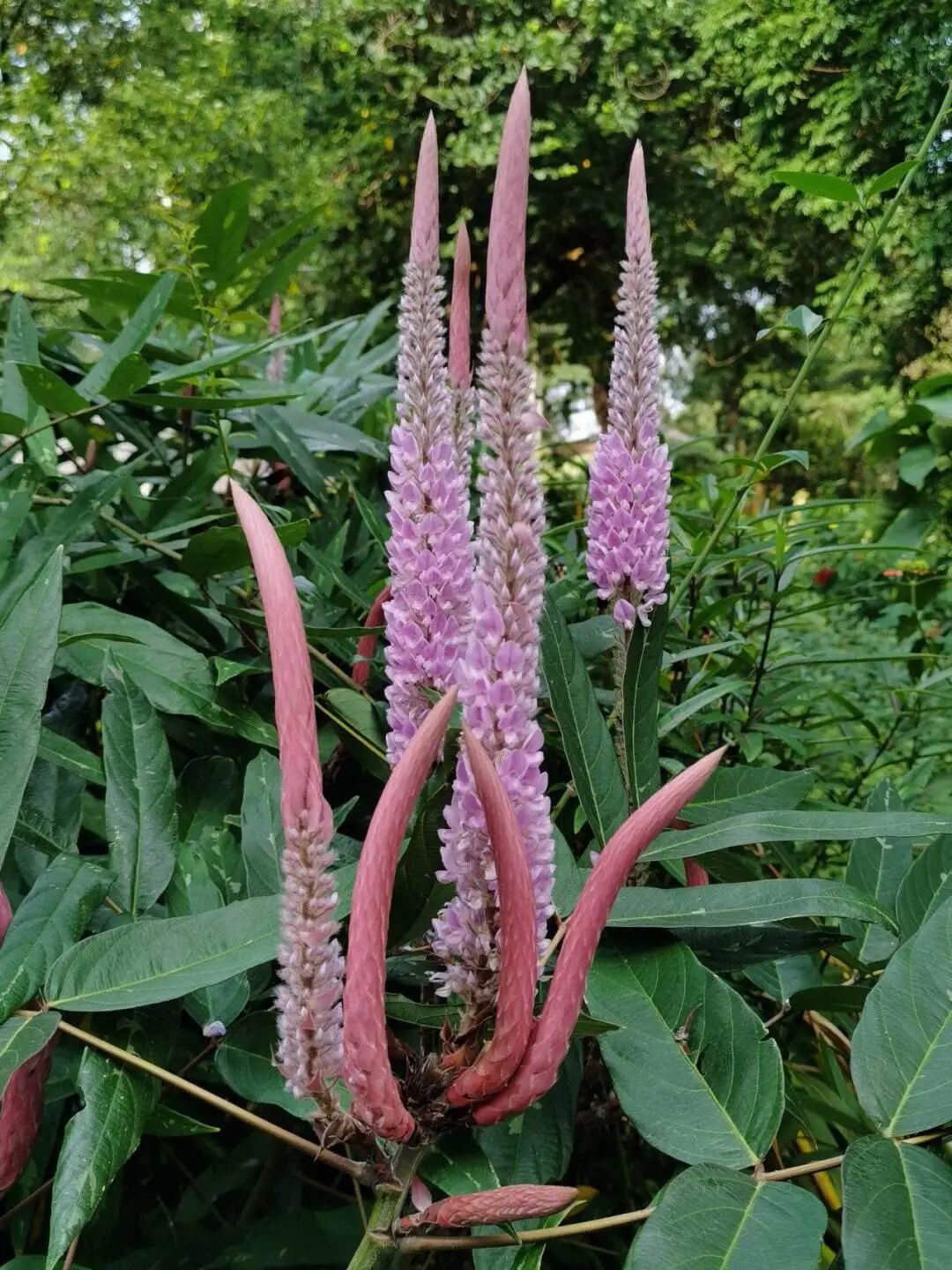 Scorpion tail banana is Perennial herbaceous plants with tall plants, The flower branches are tall and straight, and the inflorescence is shaped like a scorpion tail, and it is like a string of fiery firecrackers. The styling is very Unique.
